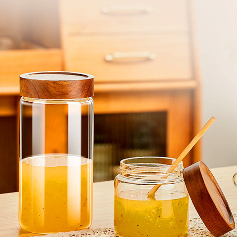 प्राकृतिक लकड़ी के एयरटाइट भंडारण कैनिस्टर शहद कॉफी बीन्स अनाज के लिए पर्यावरण के अनुकूल खाद्य भंडारण बॉक्स